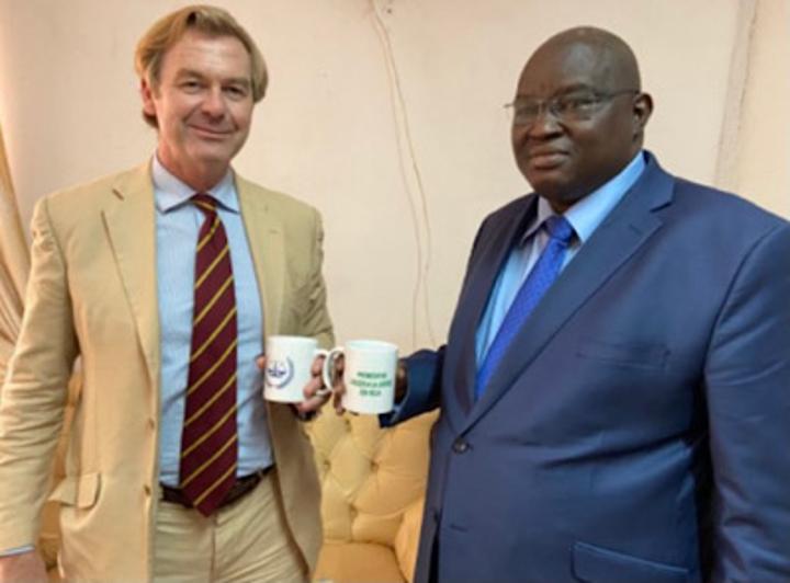 Étrange pays que la Centrafrique où les réseaux virevoltent dans une grande confusion des fonctions et un total mépris des codes étatiques les plus reconnus . Depuis Juin 2021, Arnaud Djoubaye Abazène, Ministre d’Etat chargé de la Justice, de la Promotion des Droits Humains et de la Bonne Gouvernance, Garde des Sceaux, fait l’objet de graves accusations. Et bien cela n’empêhe pas Mike Cole, représentant de la CPI en Centrafique, à poser tout sourire avec ce ministre, un cliché relayé par la CPI sur son compte Twitter.