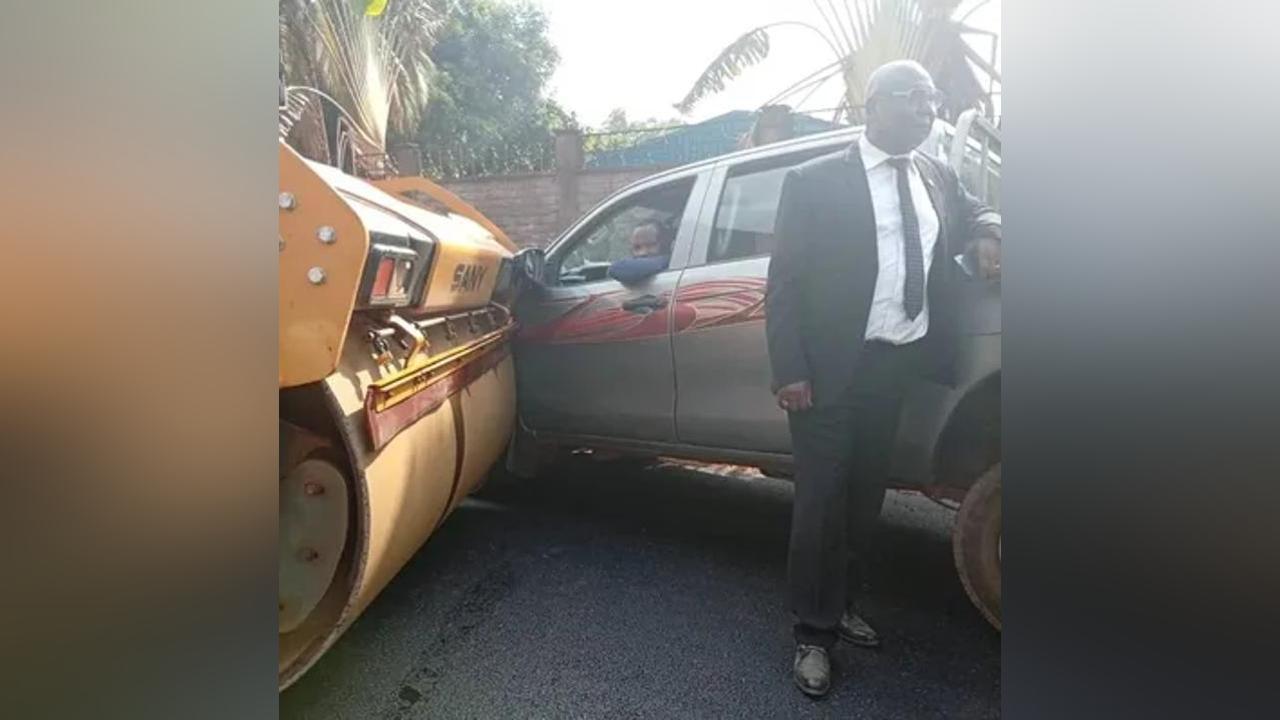 Avançant tranquillement sur cette avenue, le véhicule est arrivé au niveau de l’entrée du quartier Pindao que les choses ont pris une autre tournure. À peine le véhicule engagé sur la route fraîche, le rouleau compresseur du chantier, conduit par une dame, s’est avancé dans sa direction. L’engin a percuté la portière droite du véhicule, l’endommageant visiblement, sous les yeux de l’ancien chef du gouvernement.