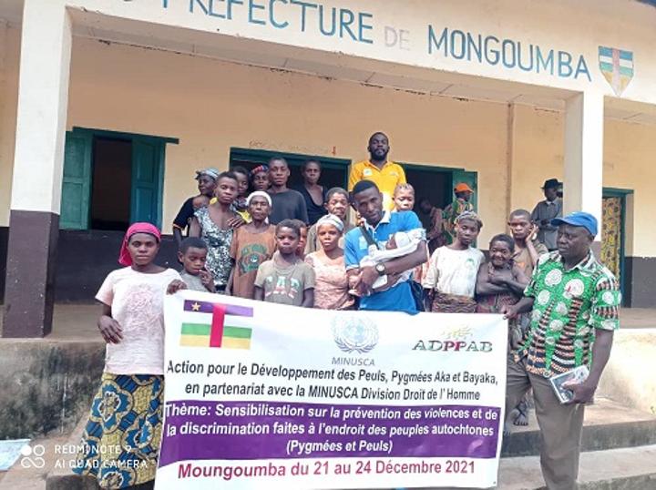 À Bangui, un atelier de sensibilisation publique avait été organisé du 19 au 22 octobre 2021 sur la prévention des violences faites à l’endroit des peuples autochtones pygmées et peuls. Cette activité a été appuyée par la division des droits de l’homme de la Minusca, et en présence de Monsieur Sylvain Djamani, représentant du Monsieur le maire de Bangui.