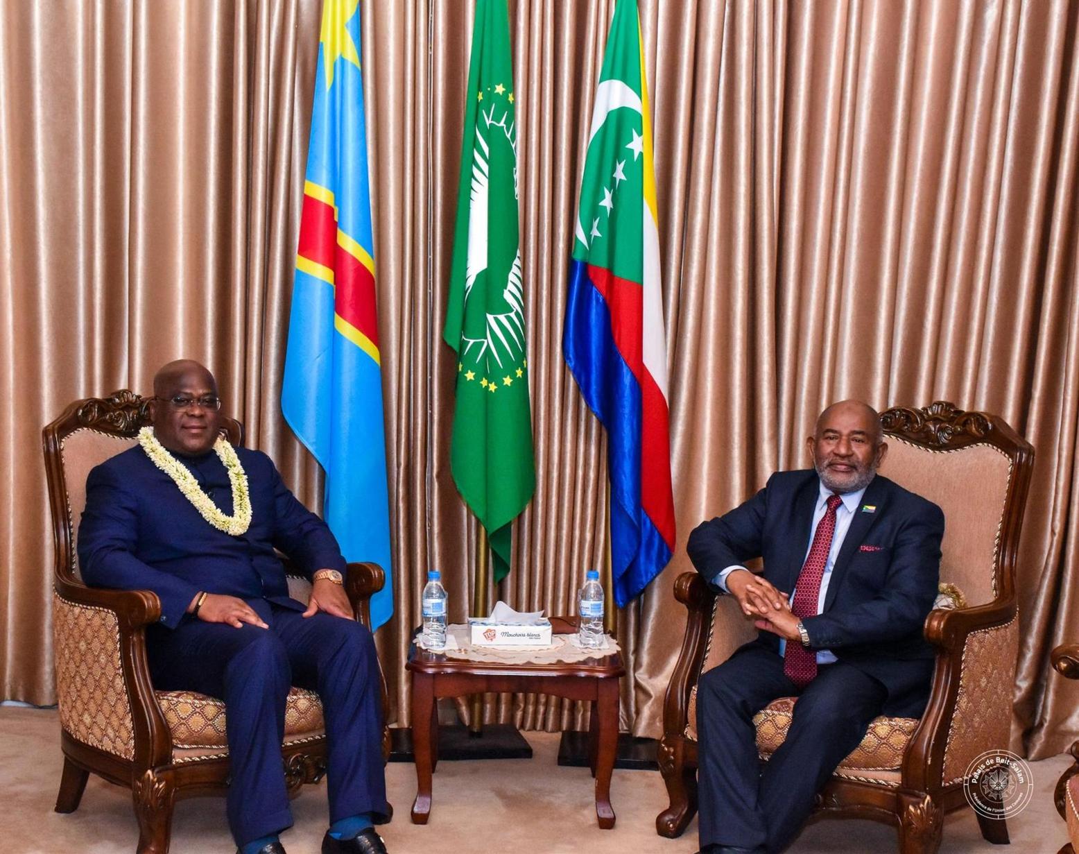 Le président congolais Félix Tshisekedi était à Moroni jeudi dernier pour rencontrer le président comorien Azali Assoumani qui succèdera le 17 février prochain au Sénégalais Macky Sall à la présidence de l’UA. Une visite qui intervient quelques semaines après celle du ministre rwandais des affaires étrangères Vincent Biruta accompagné d’une forte délégation. Les deux visites ont sans doute un point commun, « la situation sécuritaire dans le Grand Lac » où la Rdc et le Rwanda se livrent une guerre par procuration.