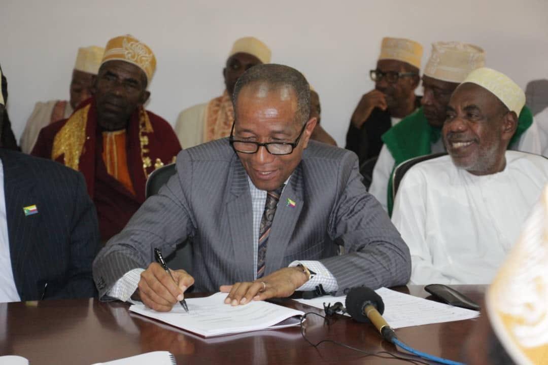 Africa-Press – Comores. Le ministère des finances a abrité samedi 10 juin dernier une cérémonie de signatures des contrats de réhabilitation des routes nationales et secondaires. Des chantiers confiés à des entreprises aussi bien locales qu’étrangères pour un montant global de 3 milliards de nos francs, dont 1,5 milliards fc, destinés à appuyer les initiatives des communautés locales.