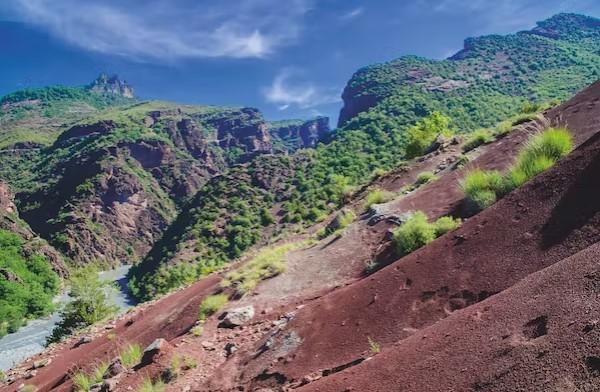 En France, au nord de Nice, d’épaisses roches rouges forment un ensemble de montagnes et de gorges spectaculaires : les gorges du Cians et de Daluis. Ces roches compactes, gréseuses, datent du « Permien », une époque qui a accueilli des grands amphibiens et grands reptiles, certains ancêtres des dinosaures… ainsi que de nombreux insectes, déjà avec de multiples lignées.