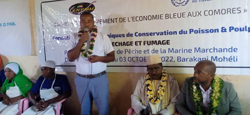 Africa-Press – Comores. Une remise de matériel de séchage et fumage des fruits de mer au profit du Club fruits de mer de Moimbao a eu lieu vendredi dernier dans le village de Barakani. Ces équipements ont été octroyés par l’organisation internationale du travail (OIT) en partenariat avec le Mouvement des entreprises Comoriennes (MODEC) pour appuyer l’association « fruits de mer » de Moimbao pout le développement de leurs activités. Cette remise fait suite à une formation sur les techniques de conservation des poissons et poulpes au bénéfice de cette association.