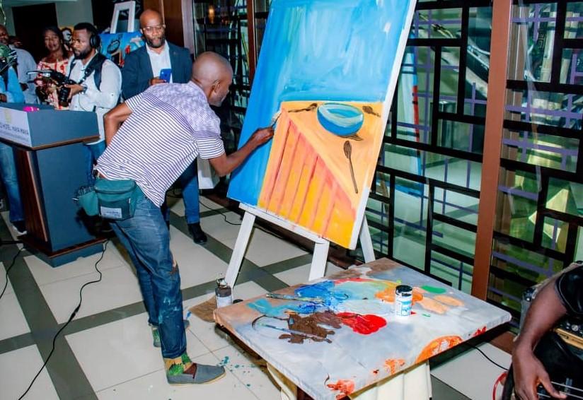 L’artiste qui n’a pas voulu prononcer un discours a plutôt peint un tableau séance tenante en un laps de temps. Il a été vivement ovationné par le public venu nombreux assister à ce vernissage. Né en 1980 à Kinshasa, en République démocratique du Congo où il vit et travaille, Dossou Makawu est détenteur du diplôme de graduat en art plastique, option peinture, obtenu à l’Académie des beaux-arts de Kinshasa. Il est également diplômé d’Etat en art plastique, option peinture.