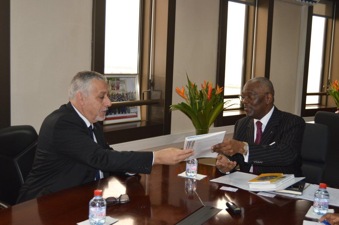 L’ambassadeur de France n’est pas sorti de cet échange les mains vides. Eric Olivier Sébastien Dibas-Franck a, en effet, mis à sa disposition un exemplaire de la revue africaine « Des Affaires maritimes et des transports’’, dont il espère avoir un accompagnement multiforme ; un de ses derniers ouvrages publiés, « Le droit maritime dans la zone Cémac, avec une dédicace ;  » L’hommage rendu en mémoire de Martin Parfait Aimé Coussoud-Mavoungou » et le livre « Droit du Congo » publié dans un contexte particulier de l’association Henri-Capitant Congo depuis trois ans.