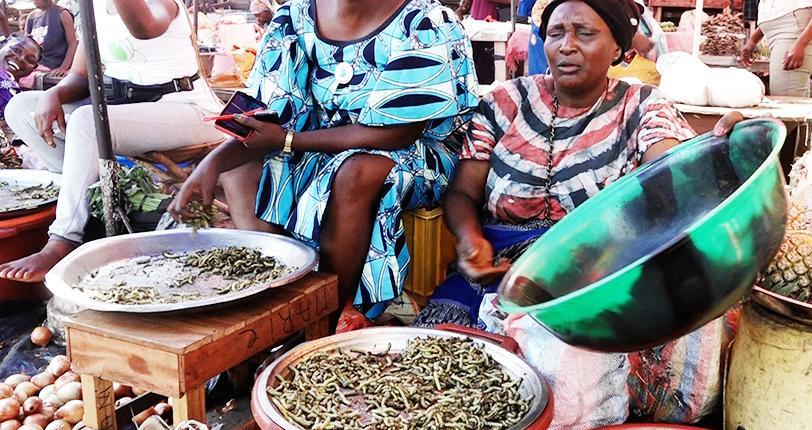 Outre la commercialisation des chenilles, les étalages des grillons gagnent du terrain dans les marchés. Cet aliment est également apprécié par les congolais.