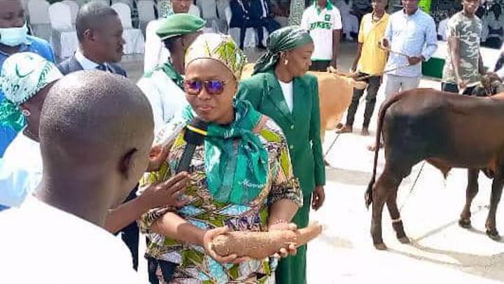 Africa-Press – Congo Brazzaville. La cérémonie de présentation de l’apport multiforme au projet agropastoral de Kounzoulou s’est déroulée au Centre d’accueil kimbanguiste du Plateau des 15 ans, en présence de la ministre des Petites et moyennes entreprises et de l’Artisanat, Lydia Mikolo, et de la présidente du Conseil municipal de Kintélé, députée maire et marraine de ce projet, Stella Mensah Sassou Nguesso.