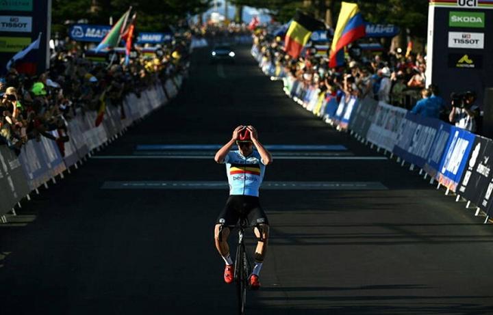 Le Flamand de 22 ans offre à son pays son premier titre mondial depuis dix ans après être déjà devenu, il y a deux semaines à la Vuelta, le premier Belge à remporter un grand Tour depuis 1978.