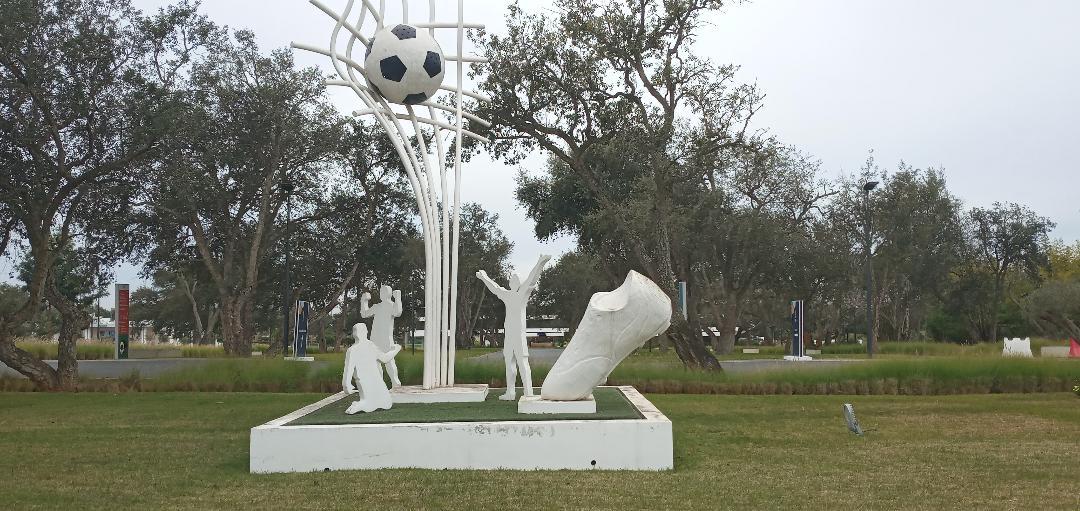 A l’entrée du Complexe sportif Mohammed VI de Rabat, la capitale marocaine, une œuvre d’art pose sur un alentour verdoyant et peut ou ne pas attirer l’attention du visiteur séduit par l’impressionnante ceinture immobilière. Elle renseigne pourtant sur l’idéal que poursuit le joyau : faire du football un compagnon de tête dans la construction du pays, un trait d’union avec les autres nations africaines et du monde.
