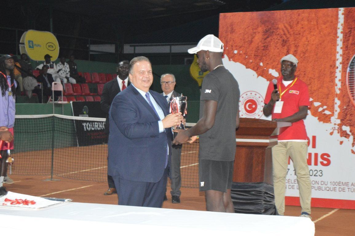 Le tennisman burkinabé gagne le chèque de quatre millions FCFA mis en jeu par l’ambassade de Türkiye au Congo, au terme d’une finale d’un bon niveau gâchée par la décision prise par le Congolais, au moment où les deux joueurs étaient à égalité, six jeux partout. Paterne Mamata ayant jeté l’éponge s’est contenté d’un chèque d’un million cinq cent mille FCFA. A la remise du trophée, le vainqueur n’a pas caché sa joie.