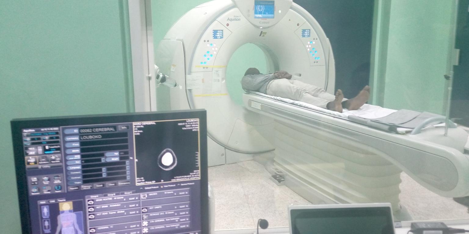 D’après les caractéristiques, il s’agit d’un scanner de 80 baret qui peut faire tous les types d’examens, notamment un scanner cérébral, un scanner qui a trait aux maladies cancéreuses ou aux maladies gastro-intestinales. En temps normal, avec les nouvelles options qui ont été mises sur cet appareil, on pourra faire des acquisitions sur le cœur et ainsi de suite.