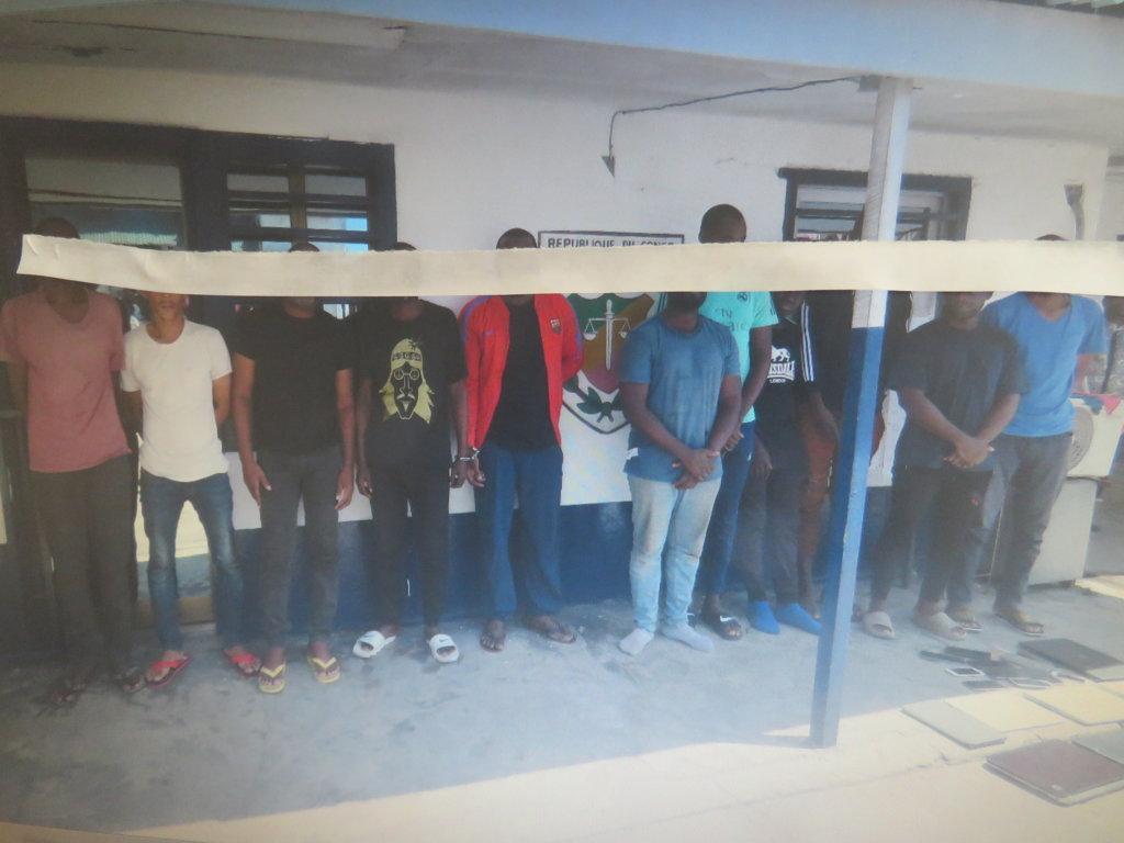 Africa-Press – Congo Brazzaville. Le commandement territorial de la police judiciaire du Kouilou et de Pointe-Noire, que dirige le colonel de police Edgard Brice Sosthene Malanda, a présenté le 21 décembre deux groupes de malfrats, responsables de cyber criminalité et de recel de divers objets volés.