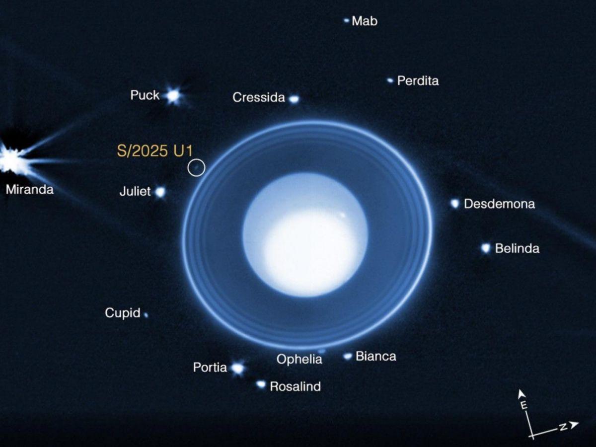 Dénommée provisoirement S/2025 U1 en attendant que l’Union astronomique internationale lui donne un nom officiel, la nouvelle lune repérée par le James Webb se situe pour sa part dans le plan équatorial d’Uranus et possède une orbite quasiment circulaire suggérant qu’ »elle aurait été formée à proximité de l’endroit où elle se situe actuellement », précise Maryame El Moutamid, elle aussi astronome à l’Université Cornell.