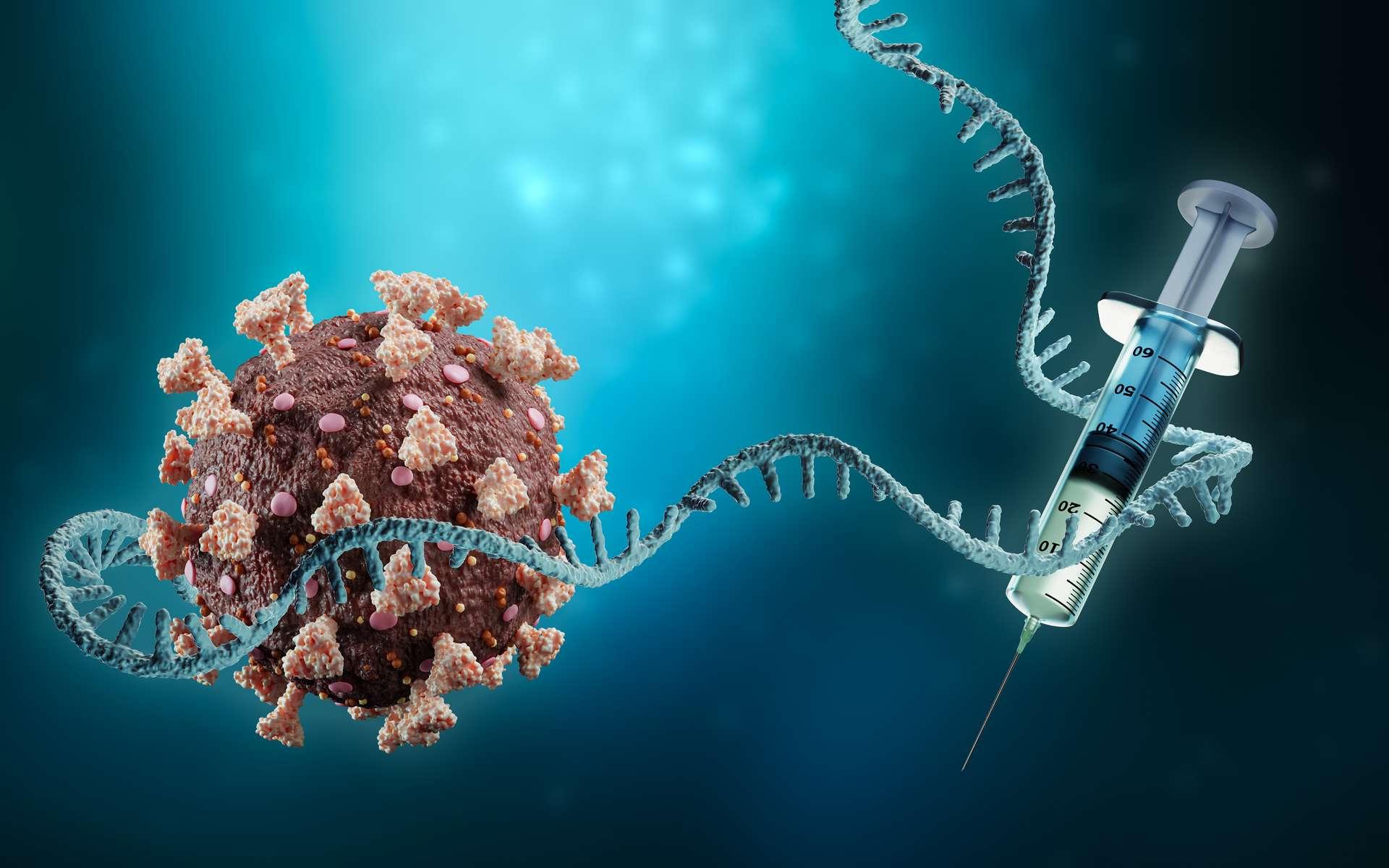 C’est sur cette fonction que reposent les vaccins à ARNm. Le principe est en effet d’injecter dans des cellules du tissu musculaire l’information leur permettant de produire une protéine soigneusement sélectionnée et modifiée de l’agent infectieux contre lequel on souhaite obtenir une immunité – en l’occurrence la protéine Spike du SARS-CoV-2. Les cellules de l’individu vacciné fabriqueront elles-mêmes transitoirement le constituant viral en question, qui sera reconnu comme étranger à l’organisme et déclenchera une réponse immunitaire spécifique.