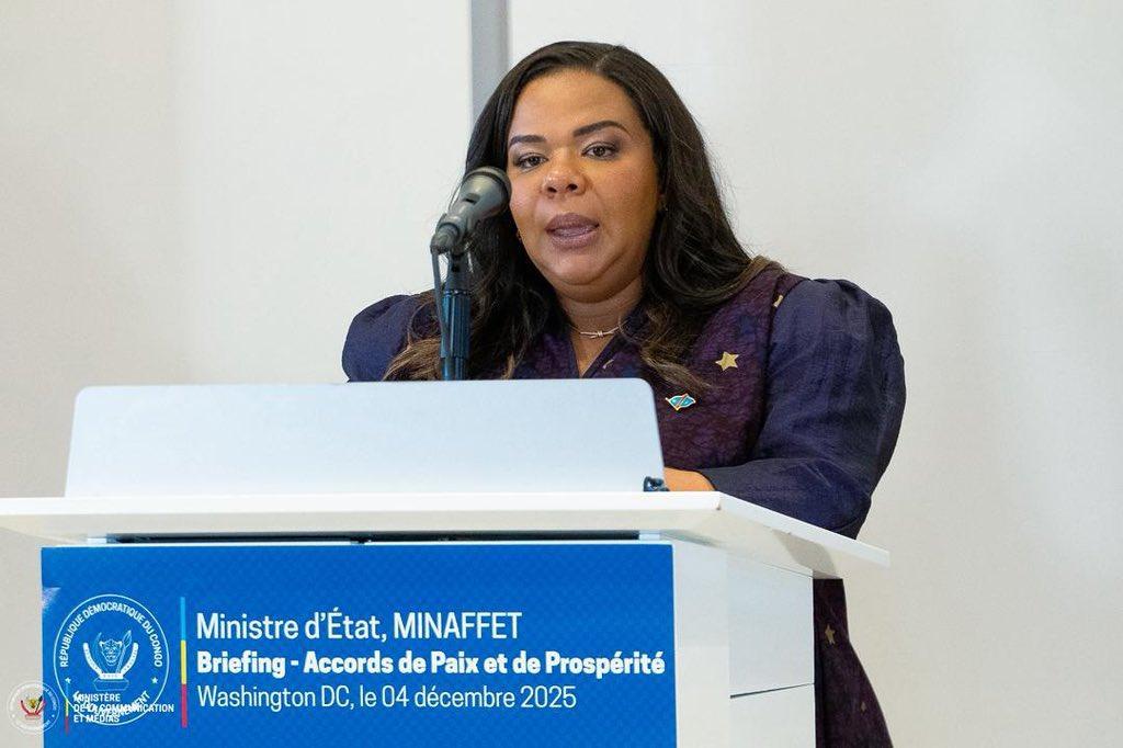 Africa-Press – Congo Kinshasa. La ministre des Affaires étrangères, Thérèse Kayikwamba, affirme que le Gouvernement est conscient des attentes des Congolais au lendemain de la signature de l’accord de paix entre la RDC et le Rwanda, sous la médiation américaine, jeudi 4 décembre 2025 à Washington aux USA.
