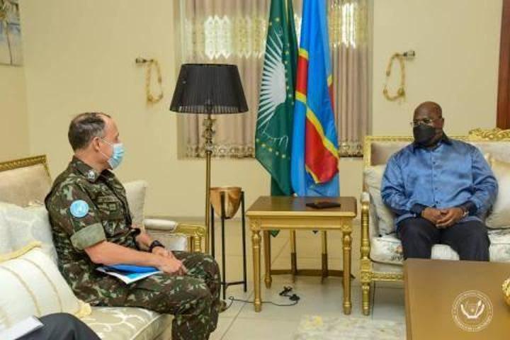 Africa-PressCongo Kinshasa. Le Chef de l’État Congolais, Félix Antoine Tshisekedi, président de la République, a reçu samedi 18 septembre 2021 à Lubumbashi (Haut-Katanga) une délégation de la MONUSCO composée du lieutenant général Dacosta, commandant de la Force de la MONUSCO et de François Grignon, Directeur des affaires politiques de la MONUSCO.