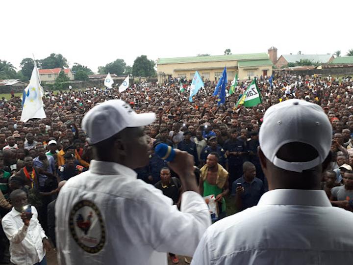 Attendu à 13h00′ par ses militants, Martin Fayulu Madidi a débuté son meeting à 16h00′, sur le terrain sainte Thérèse du quartier 6 dans la commune de Ndjili.