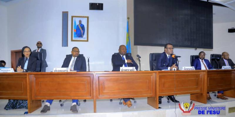Africa-Press – Congo Kinshasa. Le vice-Premier ministre, ministre de la Fonction publique, de la Modernisation de l’administration et de l’Innovation des services publics, Jean-Pierre Lihau, a ouvert vendredi, à l’hôtel du gouvernement, les travaux de la commission paritaire gouvernement -ban syndical de l’ESU, accompagné des ministres de l’ESU, Muhindo Nzangi, du Budget, Aimé Boji, de la Recherche scientifique, José Mpanda ainsi que des vice-ministres des Finance et du Budget.
