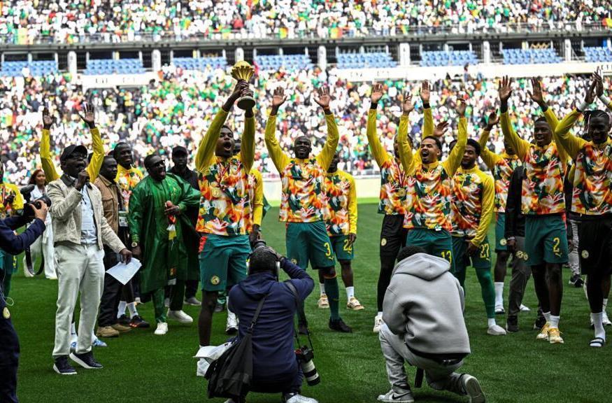 Africa-Press – Congo Kinshasa. De notre envoyée spéciale au Stade de France – Sans surprise, l’équipe du Sénégal a célébré samedi son titre de champion d’Afrique au Stade de France. Bien que déchu de leur trophée par la CAF, les Lions de la Teranga ont brandi la Coupe devant leurs supporters venus en nombre avant le match amical contre le Pérou.