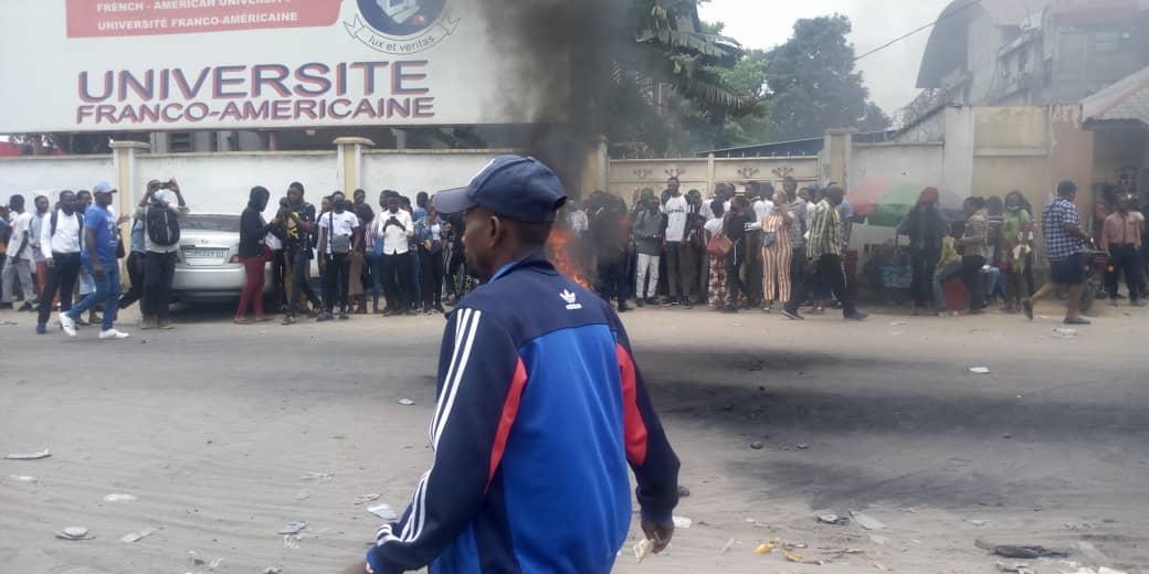 Africa-Press – Congo Kinshasa. Des étudiants de l’Université franco-américaine de Kinshasa ont manifesté devant leur université ce mercredi 22 septembre 2021, pour protester contre la décision du ministre de l’Enseignement Supérieur et Universitaire (ESU) Muhindo Nzangi, n’autorisant l’organisation de la faculté de Médecine que dans 16 universités de la RDC.