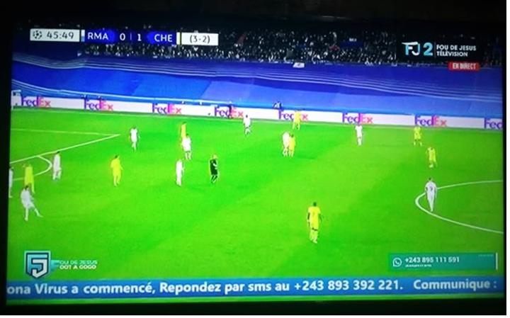 Africa-Press – Congo Kinshasa. La chaine de Télévision « Fou de Jésus » déjà suspendue par les autorités de l’audiovisuel congolais pour avoir piraté des compétitions sportives, semble poursuivre son piratage. Selon nos informations, il s’agit particulièrement de la Ligue des champions et la Première League, alors qu’elle ne détient aucun droit de diffusion en République démocratique du Congo pour les diffuser.