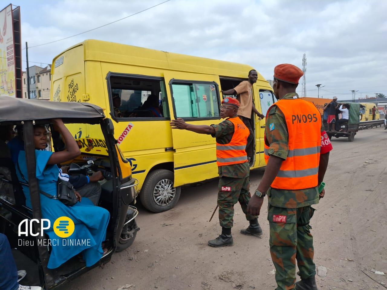 Les militaires, identifiables à leur tenue habituelle renforcée par des gilets orange vif portant la mention PM (Police militaire), travaillent notamment à disperser les taxis-bus qui encombrent l’avenue colonel Mondjiba, au niveau de la station totale, en embarquant les clients à destination vers le grand marché « Zando », dans la commune de la Gombe.