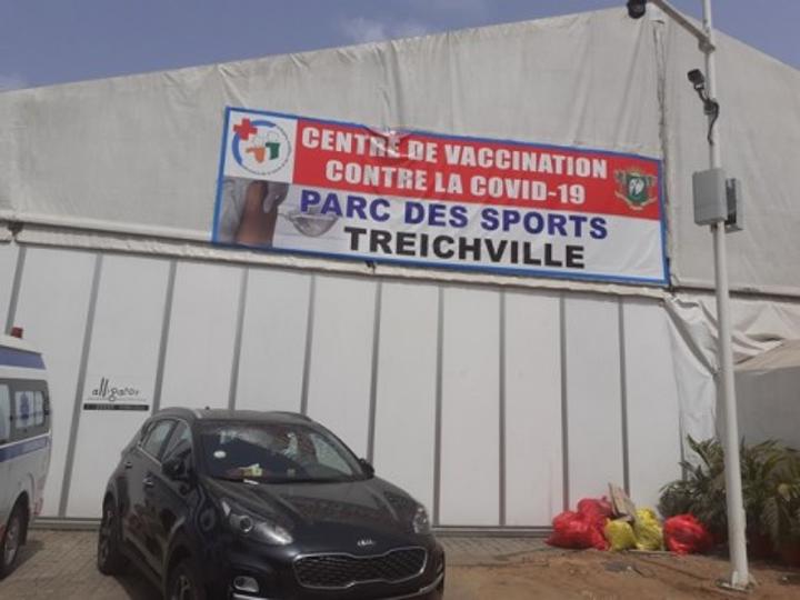 Au centre de vaccination contre la Covid-19 du parc des sports de Treichville, pas grande affluence, des volontaires se succèdent pour se faire vacciner.