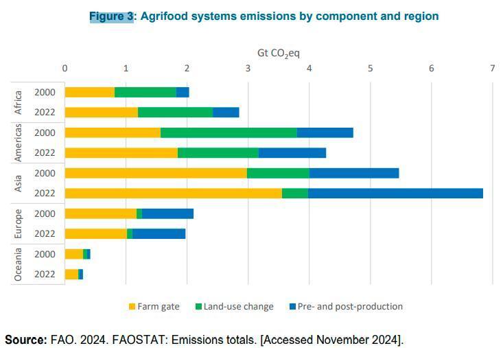La croissance des émissions en Afrique contraste cependant avec la dynamique globale. D’après la FAO, la part des émissions de gaz à effet de serre des systèmes agroalimentaires a continué de diminuer à travers le monde, passant de 38 % en 2000 à 29,7 % en 2022, soit la première fois qu’elle descend en dessous de 30 %.