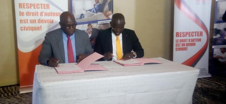 Africa-Press – Côte d’Ivoire. Le directeur général du bureau ivoirien des droits d’auteur (BURIDA), Ouattara Karim a signé, lundi 04 juillet 2022, à Abidjan, une convention avec le représentant de la compagnie aérienne CORSAIR en Côte d’Ivoire, Ibra Wane.