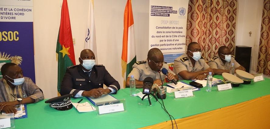 Elle s’inscrit dans le cadre des projets, « Renforcer la Sécurité et la cohésion sociale aux frontières Nord de la Côte d’Ivoire » (RECOSOC) et « Consolidation de la paix dans la zone frontalière du Nord-Est de la Côte d’Ivoire, par le biais d’une gestion participative et planifiée des ressources naturelles » (PBF GPRN).