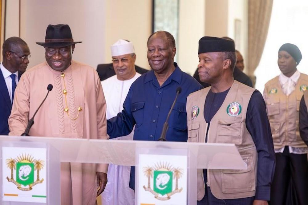 À la veille du scrutin présidentiel prévu pour le samedi 25 octobre 2025, le président sortant Alassane Ouattara a reçu à sa résidence de Cocody-Golfe une importante délégation d’observateurs internationaux conduite par l’ancien président du Nigéria, Goodluck Jonathan, chef du Forum Ouest-Africain des Sages (Elders). Étaient également présents des représentants de la CEDEAO et de l’Union africaine, venus s’enquérir des préparatifs et encourager un climat de paix et de sérénité durant le processus électoral.