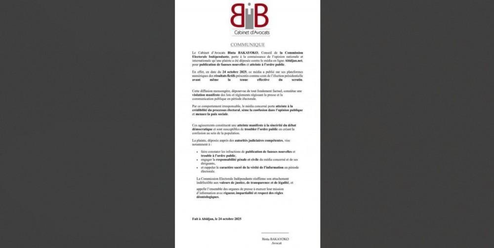 Africa-Press – Côte d’Ivoire. Jour de vote Présidentiel en Côte d’Ivoire sans grand enthousiasme et secoué ce matin par la plainte déposée par la CEI contre le site portail Abidjan.net qui a, volontairement ou pas, diffusé, hier, des résultats faisant office de résultats définitifs, de quoi interroger. Il fait objet d’une plainte de la CEI pour « publication de fausse nouvelle et atteinte à l’ordre public », comme relevé dans le communiqué du cabinet d’avocat « Binta Bakayoko », conseil de l’institution en charge des élections.