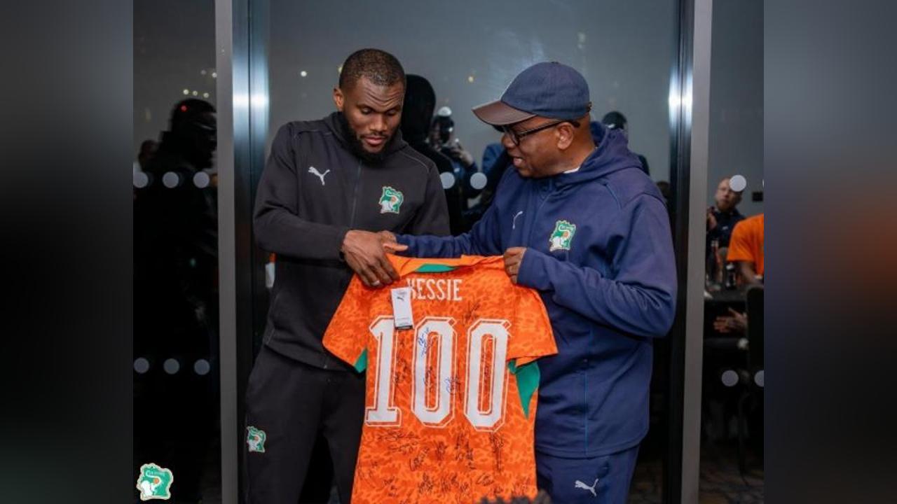Africa-Press – Côte d’Ivoire. Le capitaine des Éléphants, Franck Kessié a été honoré ce lundi 30 mars 2026 par le président de la Fédération Ivoirienne de Football ainsi que par ses coéquipiers, à l’occasion de sa 100e sélection avec la Côte d’Ivoire.