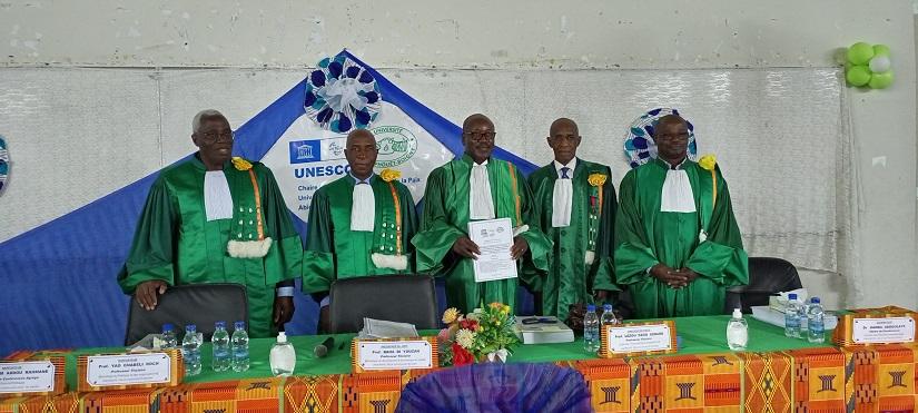 En présence du Commandant supérieur de la Gendarmerie nationale, le général de corps d’armée, Alexandre Apalo Touré, du chef d’état-major général des armées adjoint, Kouamé Julien, des hauts gradés de l’armée et des membres de la famille de l’impétrant, le jury, présidé par le Professeur Baha Bi Youzan, l’a félicité pour la qualité du travail.