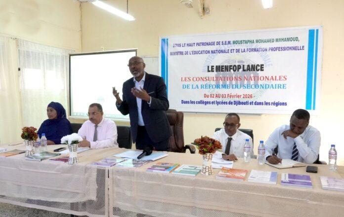 Le ministère de l’Éducation nationale et de la Formation professionnelle (MENFOP) a officiellement lancé, hier, la consultation nationale sur la réforme de l’enseignement secondaire. La cérémonie s’est tenue au lycée de Djibouti sous le haut patronage du ministre de l’Éducation nationale et de la Formation professionnelle, Moustapha Mohamed Mahamoud, en présence de nombreux responsables éducatifs et acteurs de terrain.