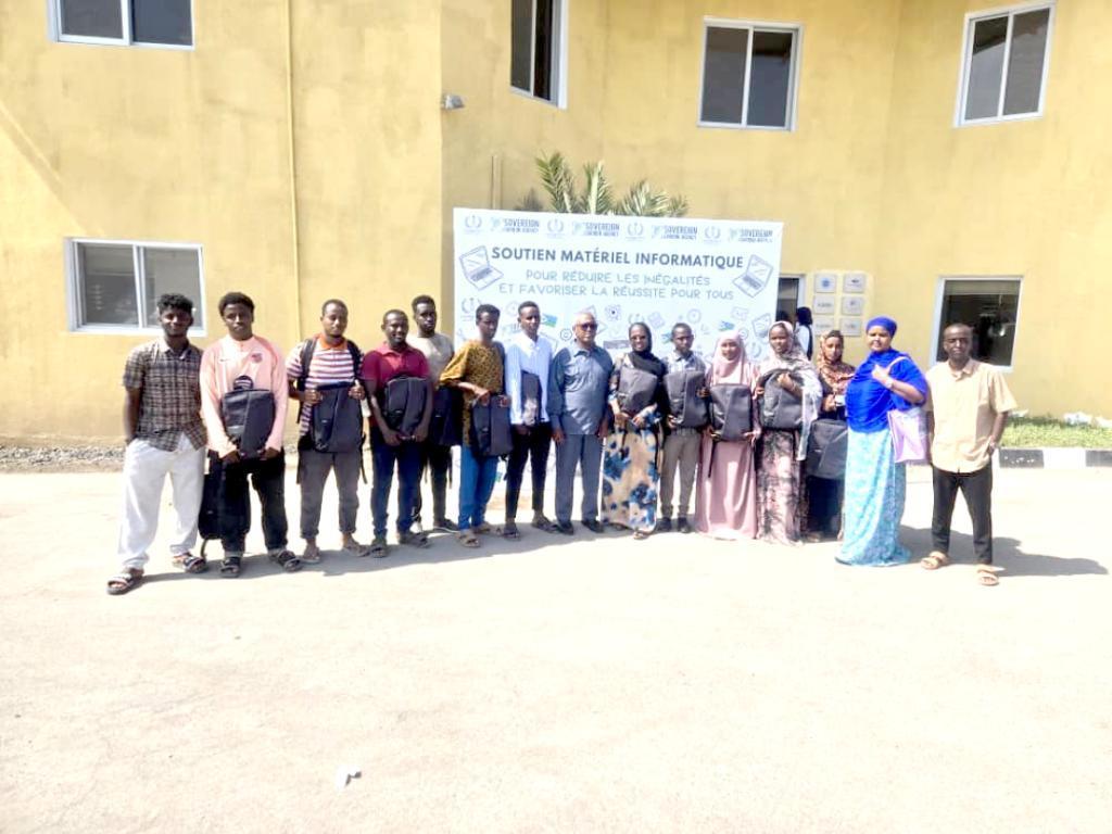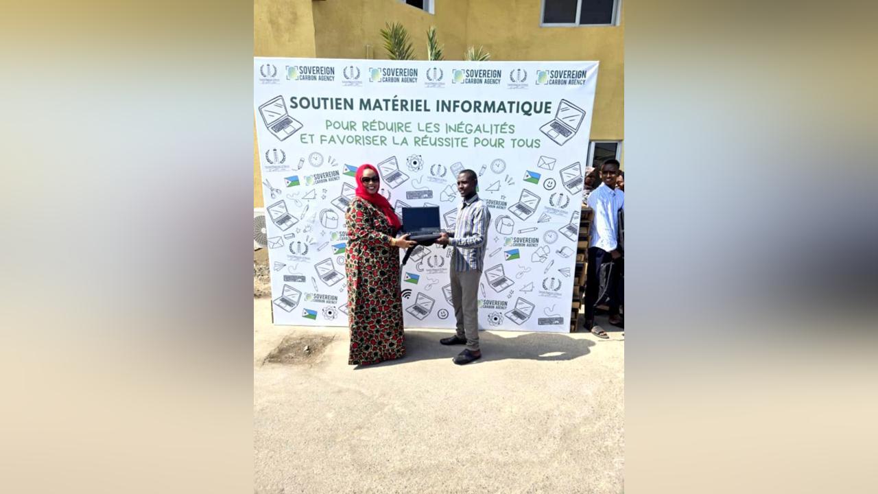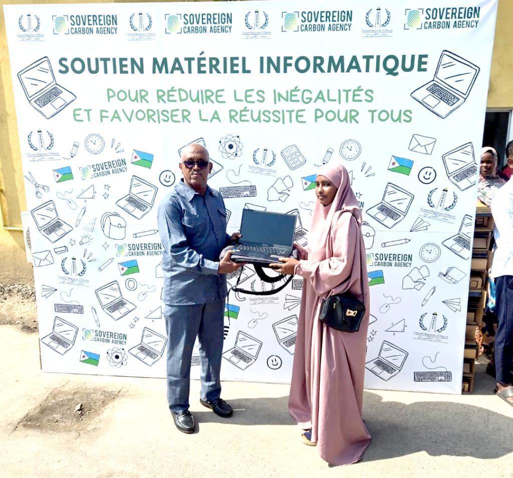 Africa-Press – Djibouti. L’Agence Sovereign Carbone (ASC), en collaboration avec le Conseil régional d’Obock, a organisé une cérémonie marquante de remise d’ordinateurs portables aux universitaires de la région, le mercredi 10 décembre 2025. Cet événement, qui s’est tenu dans une atmosphère empreinte d’enthousiasme et d’espoir, a réuni un large public, témoignant de l’importance accordée à l’éducation dans la région. La cérémonie a eu lieu en présence de plusieurs personnalités éminentes, dont: Monsieur Mohamed Houmed Ismaël, Président du Conseil régional d’Obock, Madame Corine, responsable de l’Agence Sovereign Carbone, Madame Kadiga Ibrahim, Secrétaire générale du Secrétariat d’État aux Sports, Monsieur Abdoulkader Ibrahim Idriss, Doyen de la Faculté des Ingénieurs ainsi que de nombreux hauts cadres et acteurs de la région d’Obock.