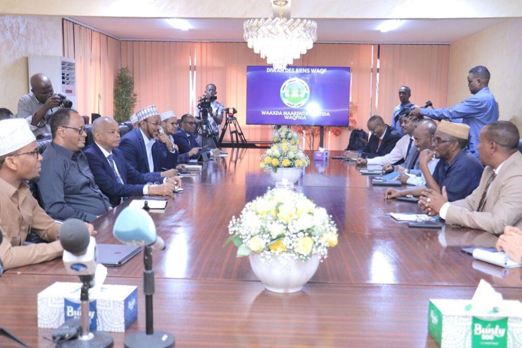 Africa-Press – Djibouti. En visite officielle à Djibouti, le ministre somalien des Waqfs et des Affaires musulmanes, Cheikh Moktar Roobow Ali, a été reçu par son homologue djiboutien, Moumin Hassan Barreh. Au-delà des échanges politiques et spirituels, c’est surtout la gestion moderne et rigoureuse des Biens Waqfs qui a retenu l’attention de la délégation somalienne. Ce modèle de gouvernance religieuse fait aujourd’hui de Djibouti une référence régionale.