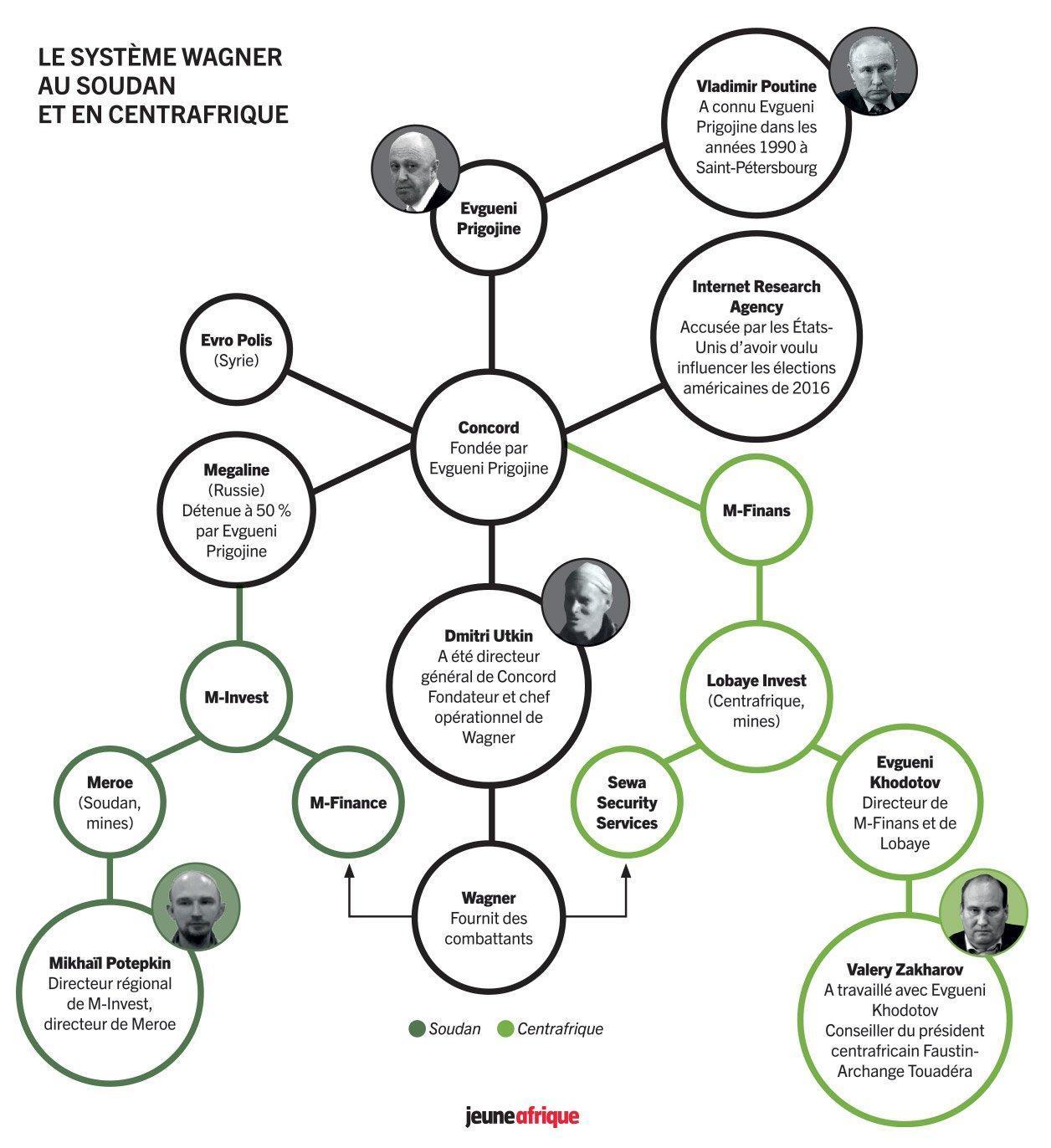 La réunion dure deux heures. Prigojine parle beaucoup. Il évoque, au nom du gouvernement centrafricain, dit-il, un partenariat gagnant-gagnant et un partage des ressources préfecture par préfecture. « Une part pour Bangui, une part pour le groupe armé de la région, une part pour Wagner », explique un participant ayant rompu sa promesse de silence. Les hommes se séparent avec, pour les Centrafricains, des valises de plusieurs dizaines de milliers d’euros. Six mois plus tard, le gouvernement centrafricain et les rebelles signent les accords dits de Khartoum. Evgueni Prigojine vient de conquérir Bangui.