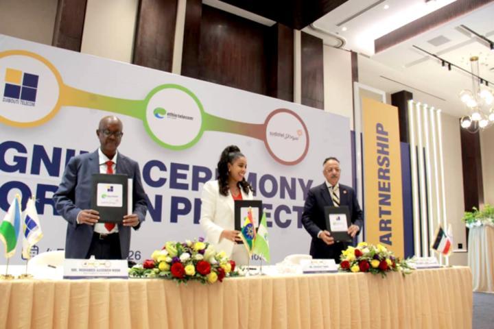 Africa-Press – Djibouti. Les CEO de Djibouti Télécom, Ethio Telecom et Sudatel Telecom Group ont procédé hier mercredi à Djibouti à la signature d’un accord historique pour le lancement du projet « Horizon », un corridor terrestre de fibre optique de près de 2 800 km reliant Djibouti, Addis-Abeba et Port-Soudan.