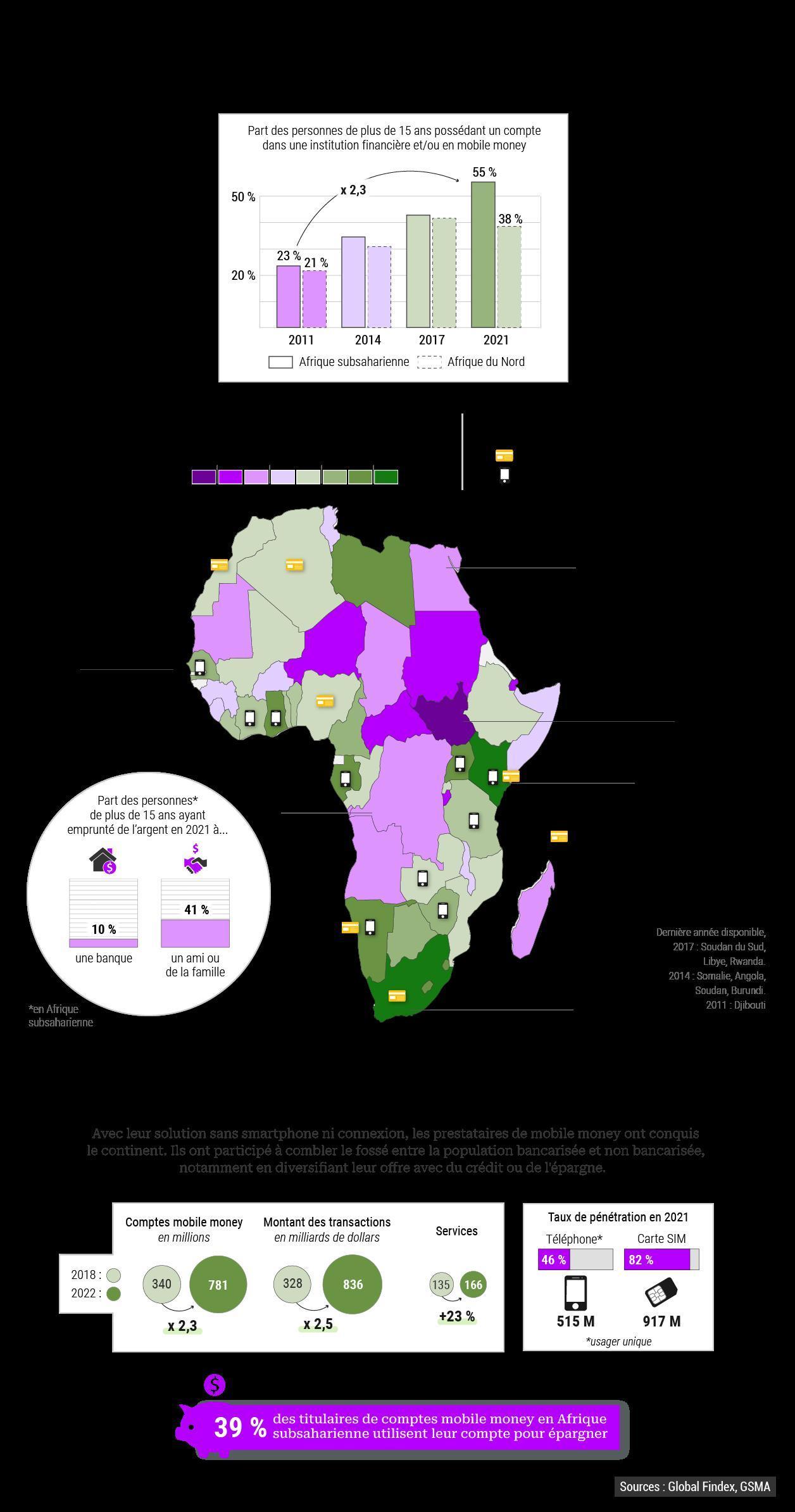 L’essor des technologies numériques, en particulier l’explosion du taux de pénétration de la téléphonie mobile, a permis le développement rapide du mobile money et offert une alternative à la création d’un compte dans une agence bancaire. Mais, s’il a largement contribué à doubler, en une décennie, le taux d’accès aux services financiers sur le continent, son développement est encore limité du fait notamment du manque d’investissements dans les infrastructures réseaux, indispensables à son déploiement sur l’ensemble du territoire.