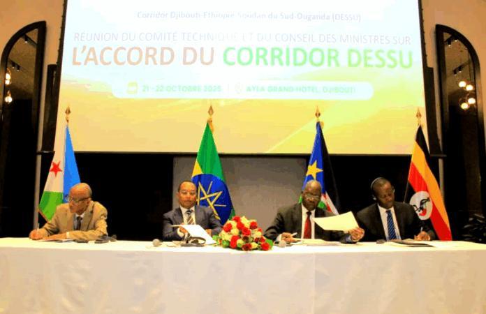 Africa-Press – Djibouti. La réunion du Comité technique et ministériel pour la création de l’Autorité de gestion du corridor Djibouti–Éthiopie–Soudan du Sud–Ouganda (DESSU) s’est tenue les 21 et 22 octobre 2025 à l’hôtel Ayla Grand, à Djibouti. Cette rencontre marque une avancée majeure dans la concrétisation d’un projet d’intégration régionale d’envergure, qui fait suite au protocole d’accord signé en février dernier. L’initiative DESSU vise à renforcer la connectivité économique et logistique entre les quatre pays de la sous-région, tout en jetant les bases d’une coopération durable et mutuellement bénéfique.