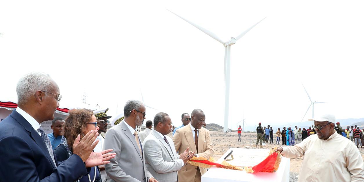 Dans la matinée du 10 septembre, « Djibouti a vécu un moment historique », de l’aveu même d’Ismaïl Omar Guelleh (IOG). Le chef de l’État venait tout juste d’inaugurer officiellement le premier parc éolien du pays, situé dans la baie du Ghoubet, une centaine de kilomètres au nord de la capitale du pays. Juchées à 230 mètres d’altitude, sur le site le plus venteux du territoire, les 17 éoliennes qui constituent le parc, installées par l’espagnol Siemens-Gamesa, ont une capacité de production totale de 60 MW, qui viennent s’ajouter aux 120 MW déjà produits chaque jour par la petite république.