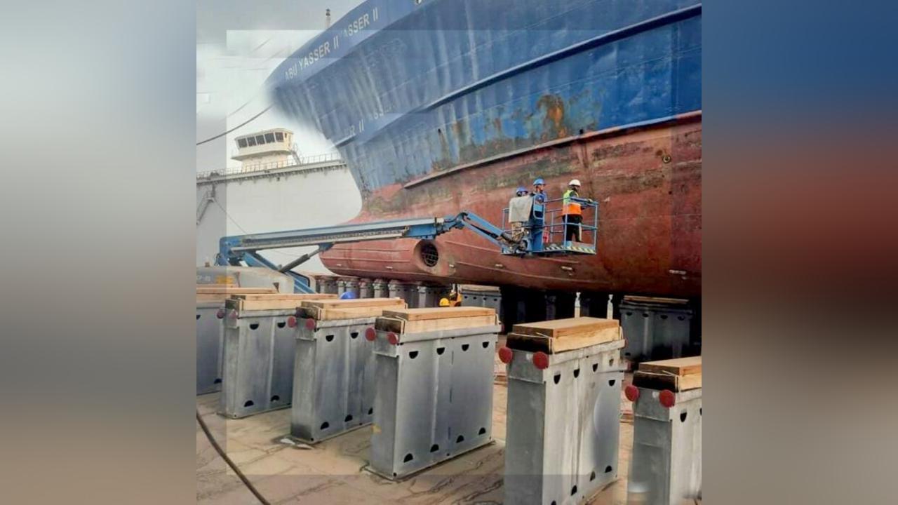 Le M/V Abu Yasser II a été accueilli sur le dock flottant modulaire ultra-moderne du chantier naval. Dès 17h00, les équipes ont entamé des travaux de maintenance et de réparation, comprenant notamment: le nettoyage de la coque et du fond avec des équipements haute pression, l’application d’un revêtement premium antifouling, le polissage de l’hélice, le remplacement des anodes en zinc usagées.