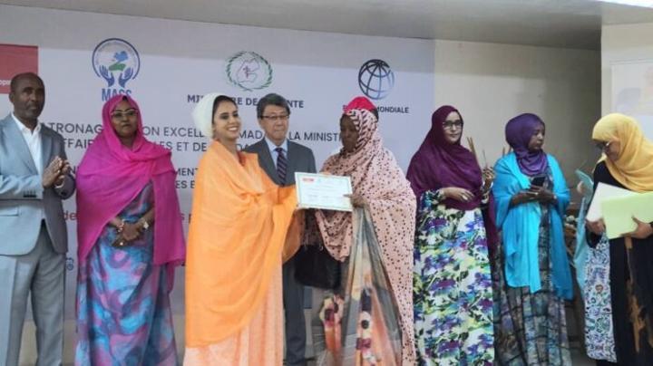 Africa-Press – Djibouti. Sous le haut patronage de la Ministre des Affaires sociales et des Solidarités, Mme Ouloufa Ismaël Abdo, l’ADDS a organisé le lundi matin dernier dans la salle de spectacle du siège de l’UNFD, une cérémonie de remise de certificats à 135 mères conseillères et agents communautaires, formés dans le cadre du projet « Mobilisation des Communautés pour une Meilleure Nutrition » financé par un don japonais et administré par la Banque mondiale.