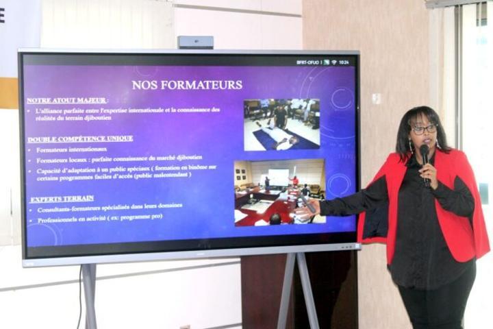 Au cœur de ce rendez-vous, Mme Fatouma Mohamed Aden, chargée des relations commerciales au Centre de formation, a présenté une large gamme de formations destinées aux jeunes, aux adultes et aux entreprises. Ces programmes, conçus pour répondre aux besoins du marché, couvrent un éventail de domaines allant du commerce aux techniques de vente, de la communication au marketing, de la comptabilité à la gestion des ressources humaines, sans oublier la technologie, le numérique, le tourisme, l’hôtellerie-restauration et le BTP. Le Centre propose également des formations spécifiques dédiées au développement durable, aux langues étrangères et à l’accompagnement à la création d’entreprises.