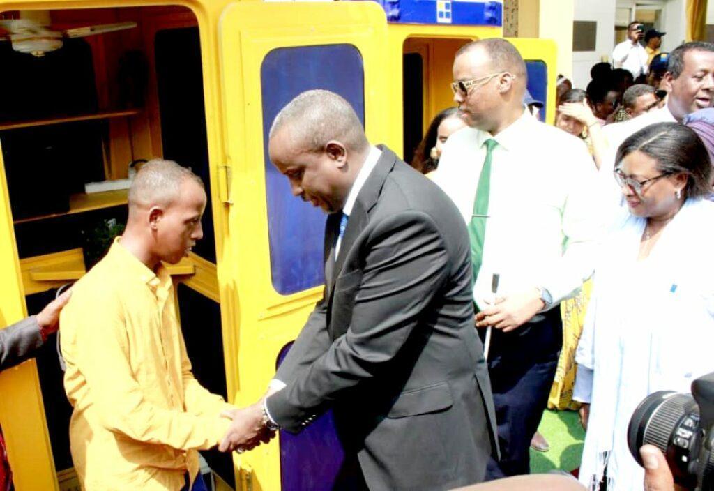 Présidé par le ministre de la communication, chargé des postes et des télécommunications, Son Excellence, M. Radwan Abdillahi Bahdon, la cérémonie de remise de ces cabines multifonctions, a réuni dans la cour du siège social de Djibouti Télécom, la ministre de la jeunesse et de la culture, Dr. Hibo Moumin Assoweh, la représentante résidente du PNUD, Emma Ngouan-Anoh, le directeur général de Djibouti Télécom, Mohamed Assoweh Bouh, le directeur général de l’Agence Nationale des personnes Handicapées, Doualeh Said Mahamoud, la directrice de D-Money, Hibo Mahamoud, une pléthore de haut cadre de Djibouti Télécom et les bénéficiaires de ce projet au nombre de 10.