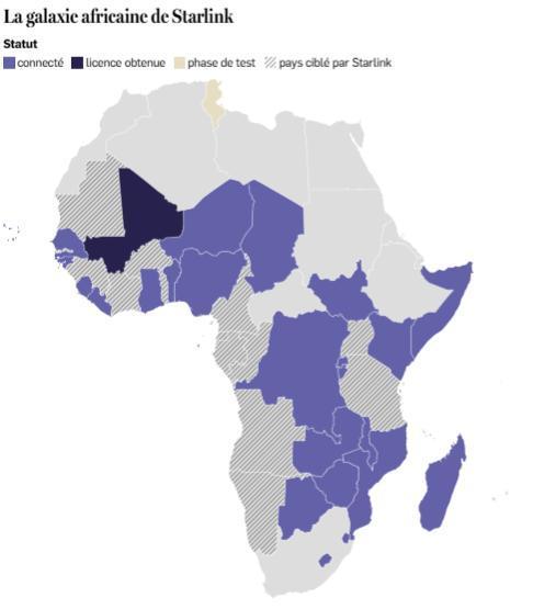 Starlink, qui exploite la plus grande constellation de satellites au monde, avec plus de 6 750 satellites actuellement en orbite, est présent en Afrique depuis janvier 2023, date à laquelle l’entreprise a commencé à proposer ses services au Nigeria. La « conquête de l’Afrique » lancée par le milliardaire américain – qu’il relaie régulièrement via des messages sur X, son réseau social – se fait parfois dans un contexte de négociations difficiles avec les pays ciblés.