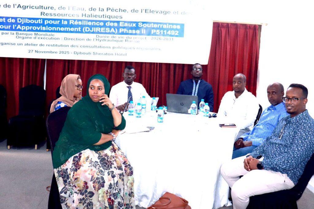 Africa-Press – Djibouti. Dans le cadre de la préparation du Projet de Djibouti pour la résilience des eaux souterraines et l’approvisionnement (DJIRESA), le ministère de l’Agriculture, de l’Eau, de la Pêche, de l’Élevage et des Ressources halieutiques a organisé, jeudi 27 novembre 2025, un atelier final de restitution des consultations publiques régionales. La rencontre, tenue à l’hôtel Sheraton, a rassemblé les principaux acteurs du secteur de l’eau, marquant une nouvelle étape vers la construction d’un avenir plus résilient pour les communautés du pays.
