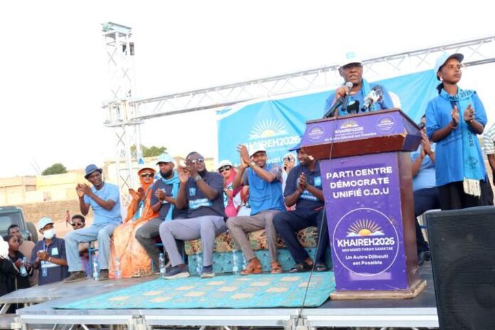 Africa-Press – Djibouti. La dynamique électorale du Parti du Centre Démocratique Unifié (CDU) s’est intensifiée dimanche dernier dans les régions de Dikhil et d’Ali Sabieh, où le candidat Mohamed Farah Samatar a réussi à mobiliser des foules importantes, témoignant d’un ancrage progressif de sa campagne au cœur des territoires. À travers ces déplacements stratégiques, le candidat a réaffirmé ses priorités politiques centrées sur l’emploi des jeunes, le développement régional et la valorisation des compétences locales, tout en appelant à transformer cette ferveur populaire en suffrages lors du scrutin à venir.