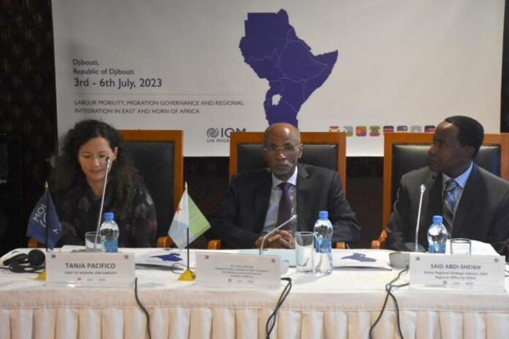 Dans son discours d’ouverture, le ministre du Travail, Omar Abdi Said, a affirmé que cette formation à laquelle vont prendre part les experts des pays membres de l’IGAD et de l’Afrique de l’Est, va contribuer à l’amélioration de la gouvernance de la migration. Pour le ministre du Travail, elle vise le renforcement institutionnel du cadre juridique et les capacités des acteurs clés, hauts fonctionnaires impliqués dans les questions migratoires des pays membres du groupe technique de travail du RFMM, en les outillant dans les domaines des normes juridiques internationales. Le ministre remercie ardemment l’OIM pour son appui permanent aux programmes du ministère du Travail en facilitant cette initiative. Saluant le haut niveau de collaboration et de coopération existant entre tous les pays présents à cette formation pour promouvoir une migration sûre et ordonnée. Par la même occasion, le ministre du Travail exprime sa gratitude à l’UKAID qui finance ce projet et la confiance qu’elle accorde à notre pays pour abriter cette formation cruciale pour les enjeux migratoires. Pour finir ses propos le ministre du Travail réitère ses remerciements à tous les partenaires qui ont œuvré à la réalisation de cette formation régionale et à tous ceux qui ont contribué à la réussite de cet événement.